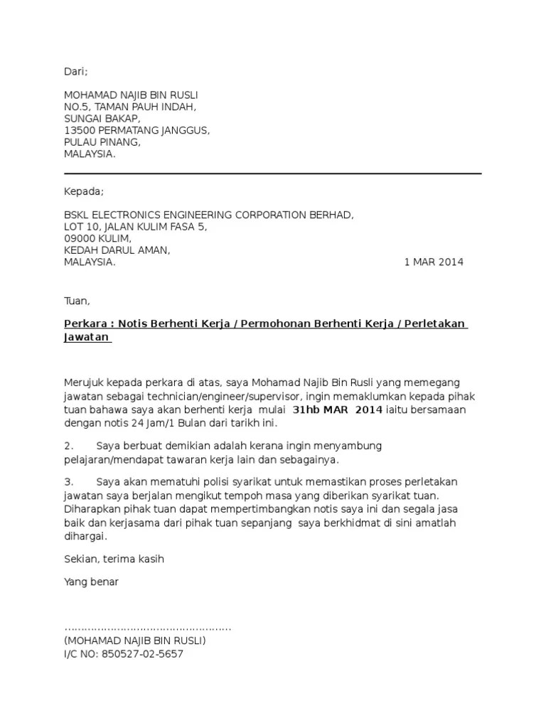 Dalam tempoh 24 jam ataupun perlu notis . Surat perletakan jawatan notis 24 jam & sebulan dalam bahasa melayu/ english bm bi. Ini contoh surat berhenti kerja serta merta, notis 24 jam, seminggu, 2 minggu & sebulan. Berikut contoh notis berhenti kerja sebulan, 24 jam, 2 minggu dan seminggu. Bolehkah ini dilakukan dan bagaimanakah bayaran gaji pekerja itu? Pastikan contoh surat resign yang anda hendak. Contoh surat berhenti kerja (bm dan english), koleksi surat perletakan jawatan resignation letter terbaik notis kerja 24 jam & notis sebulan. Himpunan contoh terbaik notis berhenti kerja 24 jam 2 minggu sebulan lain lain alasan .